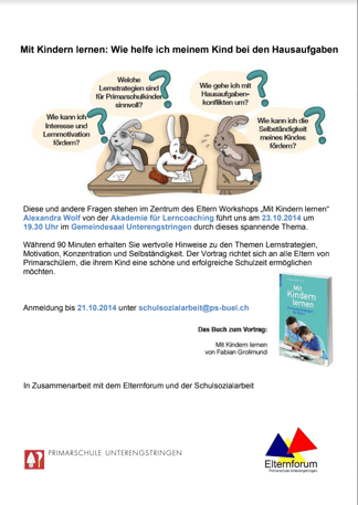 Seien sie auch dabei am 23 Oktober 2024 und lernen sie die besten Methoden unsere Kinder bei den Hausaufgaben zu unterstützen.